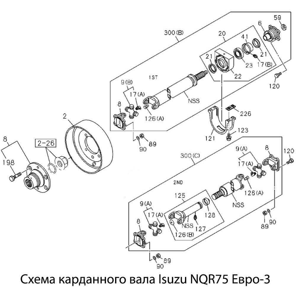 Перечень дателей на схеме карданного вала грузовиков Isuzu NQR75: