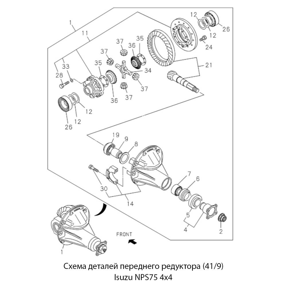 Данный редуктор переднего моста предназначен для установки на полноприводные грузовые автомобили Isuzu NPS75 4x4. Важно отметить, что автомобили данной серии имеют колесную формулу 4x4 и предназначены для эксплуатации в тяжелых дорожных условиях, включая бездорожье. Передаточное число 41/9 обеспечивает необходимые тяговые характеристики при движении по пересеченной местности. Замена редуктора требуется при появлении повышенного шума (воя) при движении, люфта в главной передаче или разрушении зубьев шестерен.