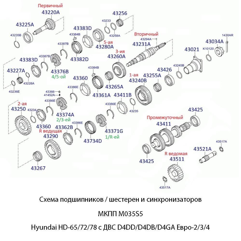 МКПП M035S5 Hyundai HD-65/72/78 D4DD/D4DB/D4GA Евро-2/3/4:
