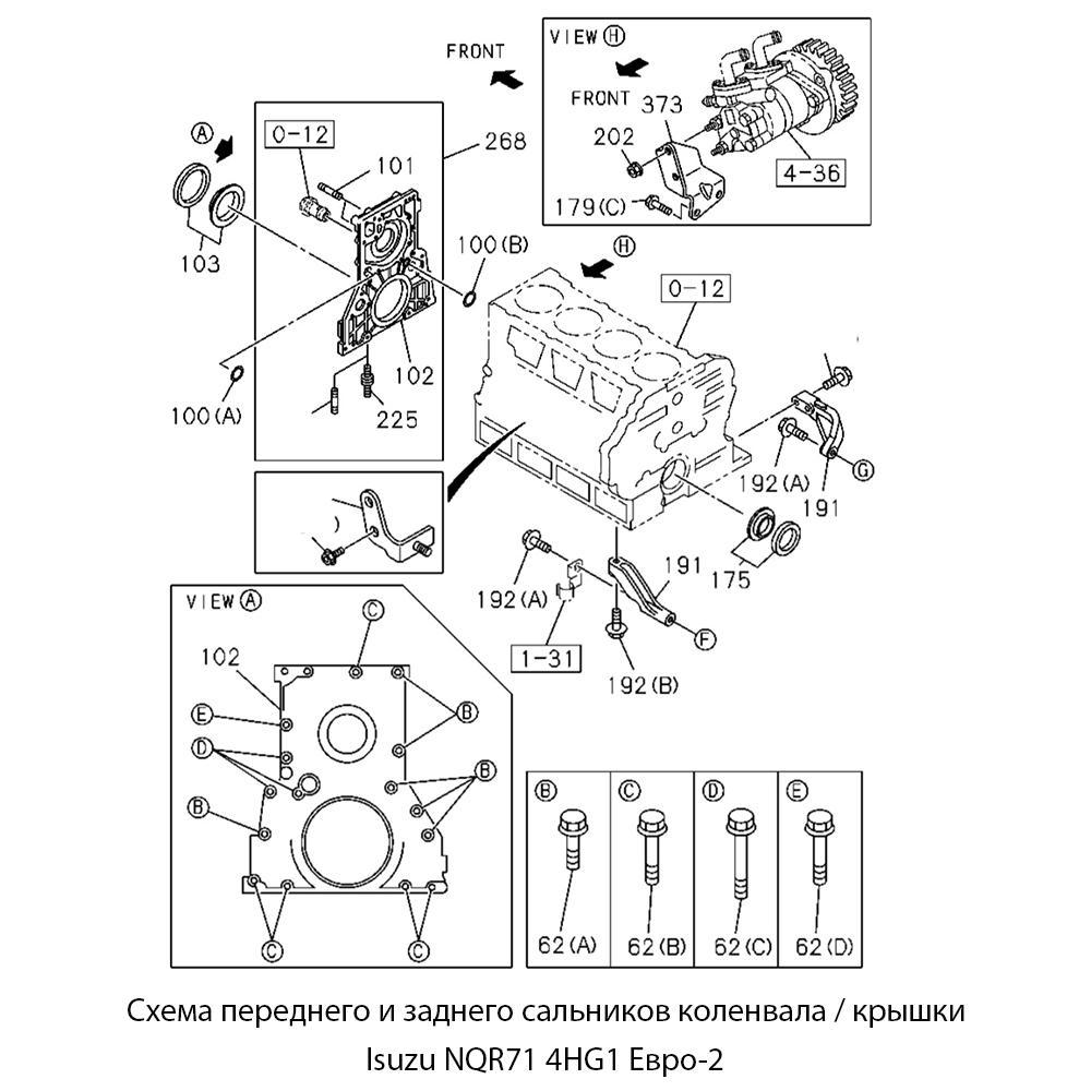 | Isuzu NQR71 | 4HG1 4.6L | 1996–2005 | Передний сальник коленвала |