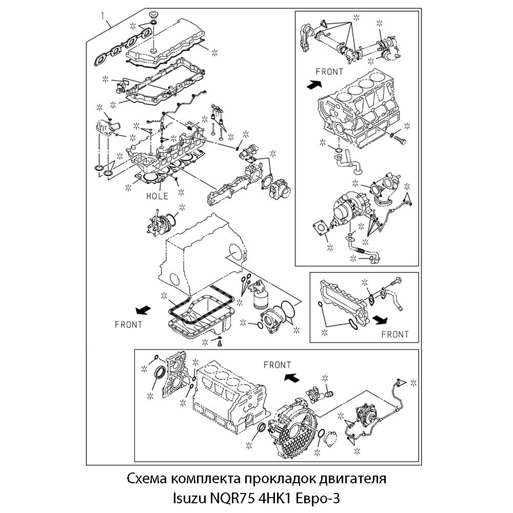 Данный полный набор прокладок предназначен для капитального ремонта двигателя 4HK1 (5,2 л, Common Rail, Евро-3), устанавливаемого на грузовые автомобили :