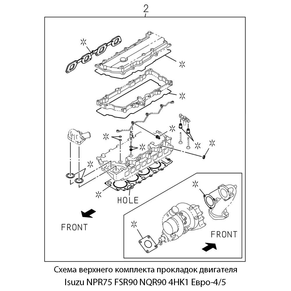Набор прокладок двигателя (Верхний | ГБЦ Т=1,475 | Без отверстий) Isuzu NPR75 FSR90 NQR90 4HK1 Евро-4/5 | Оригинал