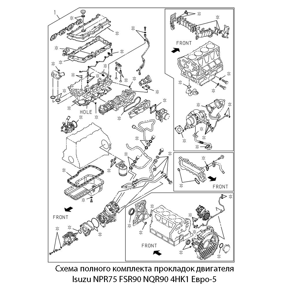 Данный полный набор прокладок предназначен для капитального ремонта двигателя 4HK1 (5,2 л, Common Rail, Евро-5), устанавливаемого на грузовые автомобили: