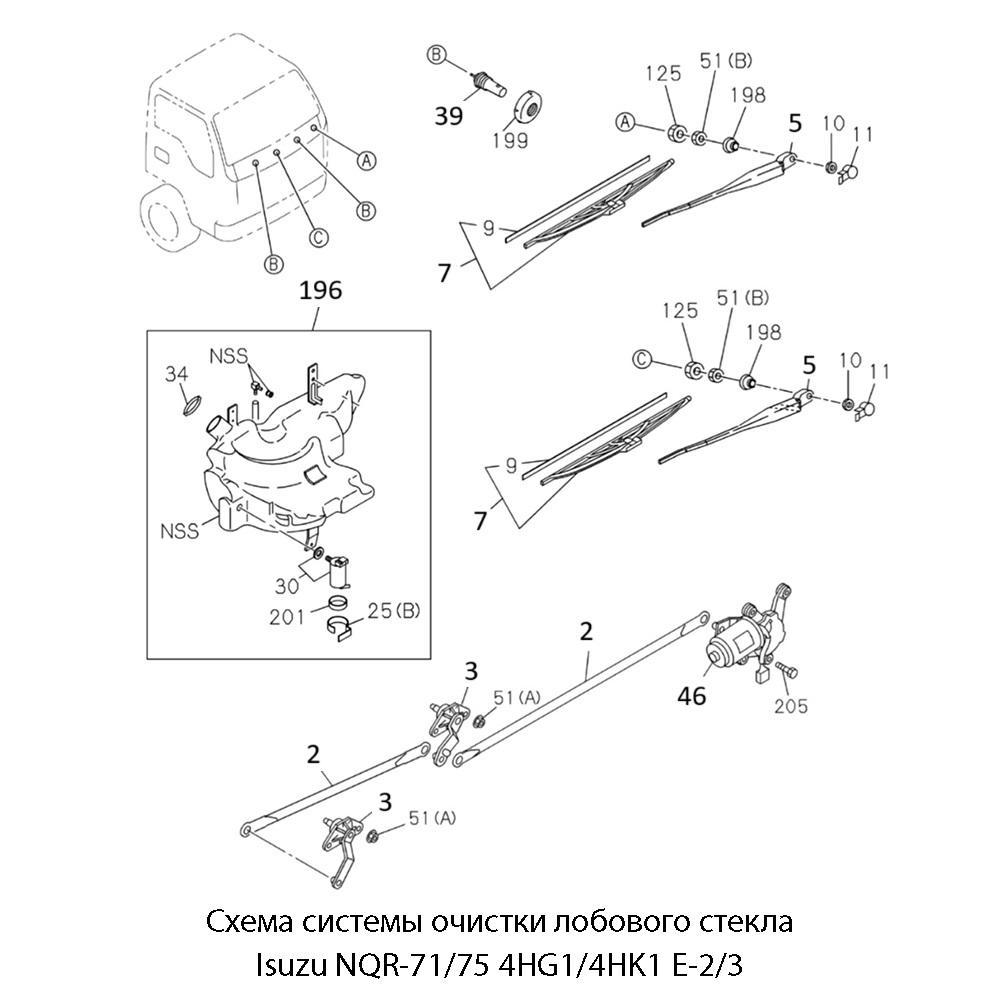 Трапеция стеклоочистителя представляет собой сборную конструкцию, включающую следующие оригинальные детали Isuzu: