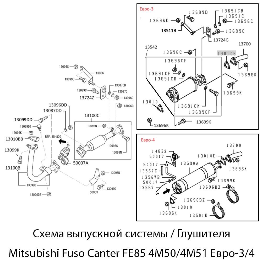 Глушитель — ключевой элемент выхлопной системы грузовиков Mitsubishi Fuso Canter моделей FE85 с двигателями 4M50/4M51, соответствующими стандарту Евро-3.
