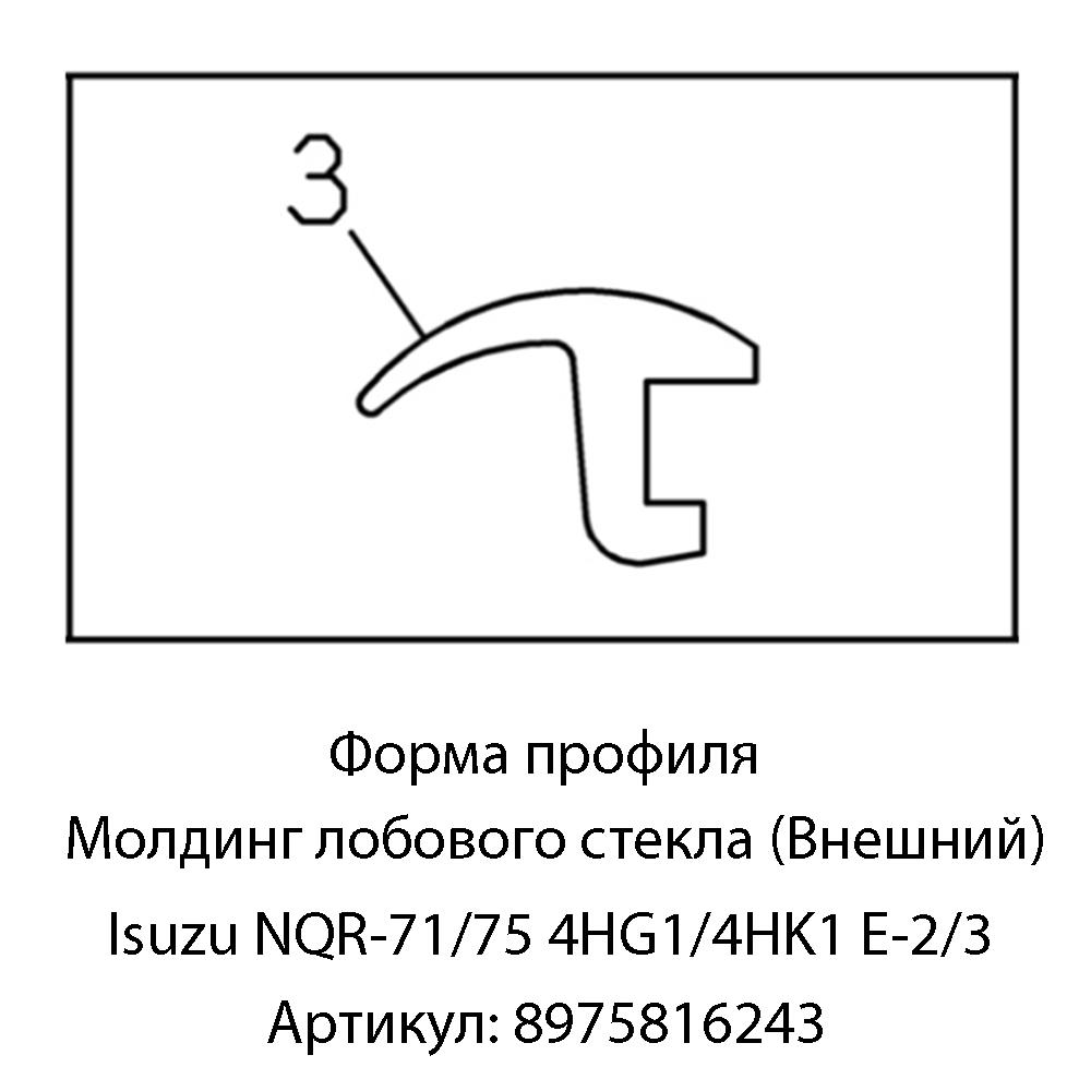 Внешний молдинг для лобового стекла автомобилей Isuzu NQR-71/75 с двигателями 4HG1/4HK1 и экологическими стандартами Euro-2/Euro-3. Защищает края стекла от внешних воздействий, улучшает внешний вид и снижает шум ветра.