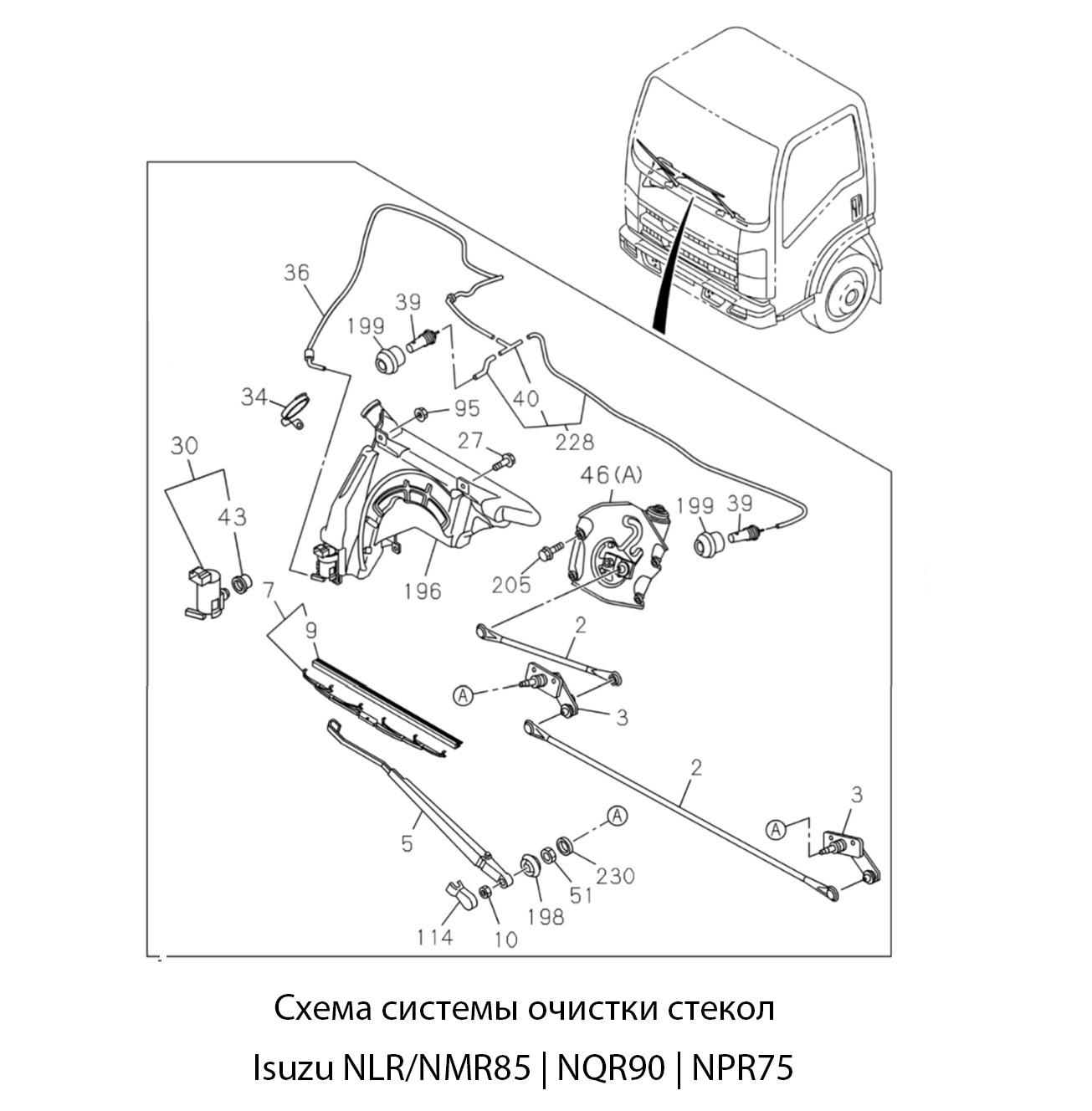 Левый поводок стеклоочистителя для автомобилей Isuzu серий NLR и NMR85 с двигателем 4JJ1, соответствующего экологическим стандартам Евро-4 и Евро-5.