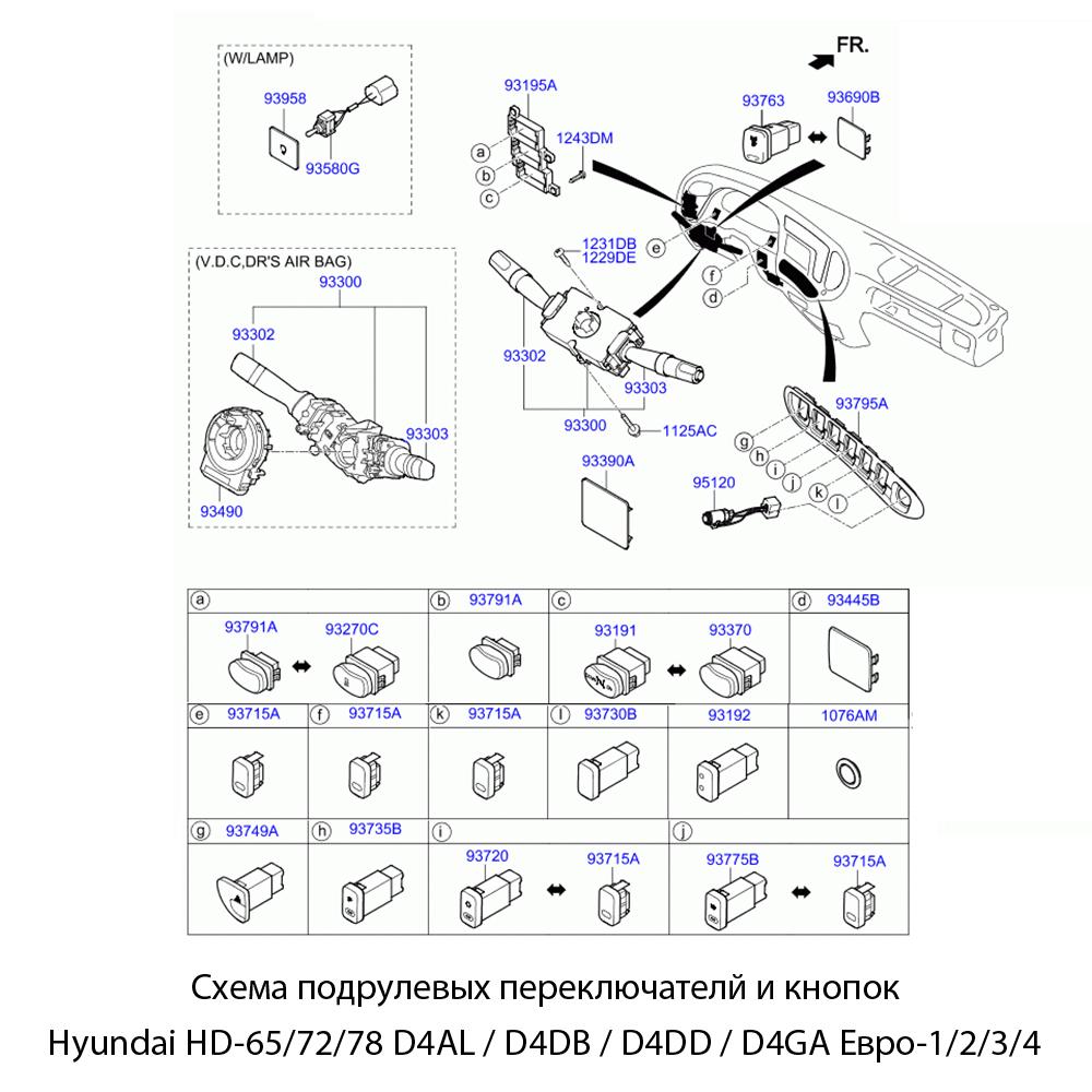 Артикул: 933035K100Правый подрулевой переключатель для автомобилей Hyundai HD-65, HD-72, HD-78 с двигателями D4AL, D4DB, D4DD, D4GA, соответствующими экологическим стандартам Евро-1, Евро-2, Евро-3 и Евро-4.