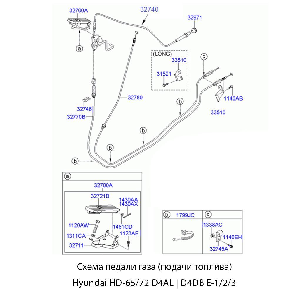 Трос регулировки газа / подачи топлива (ручной) Hyundai HD-65/72 D4AL / D4DB Евро-1/2 | Оригинал