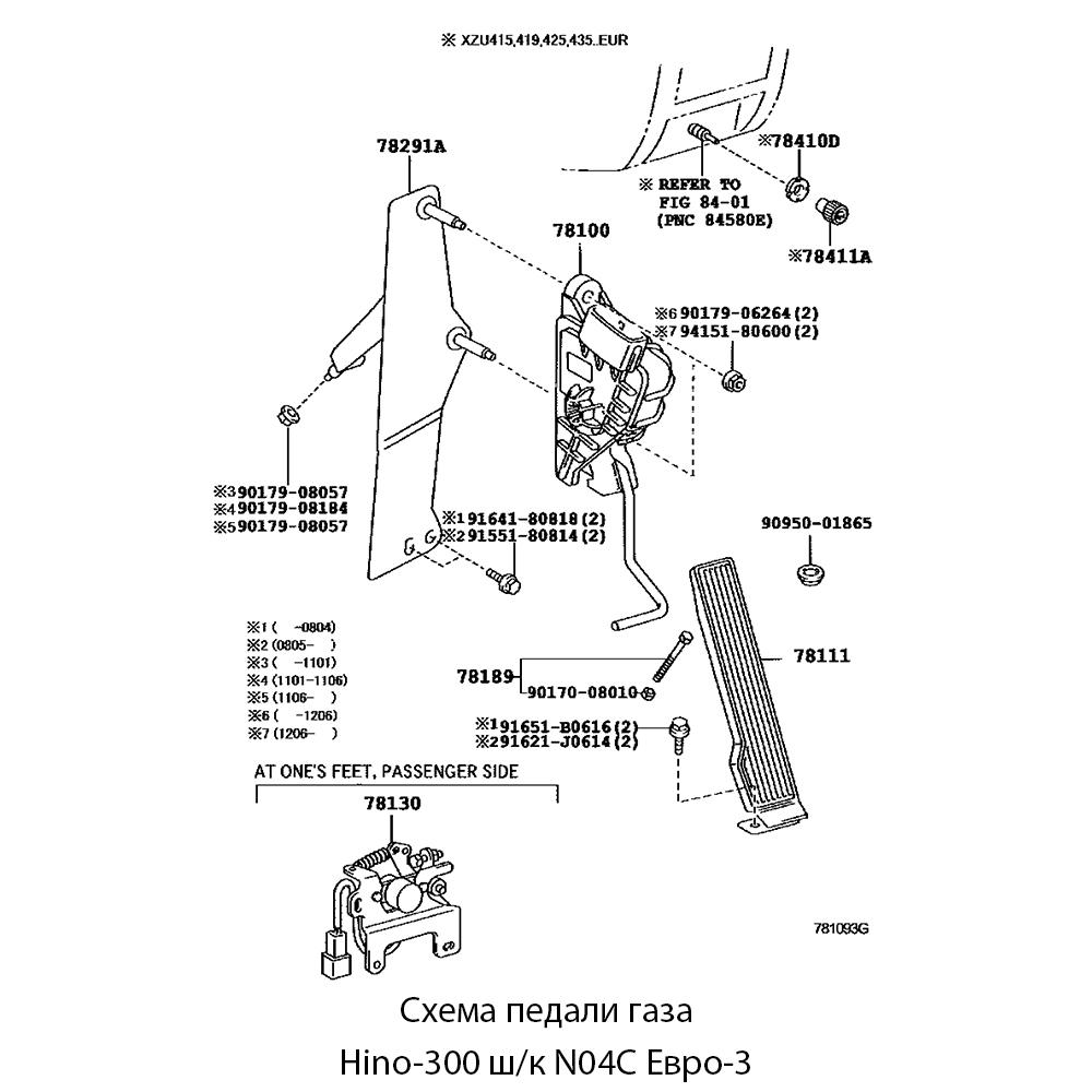 Педаль (газа) акселератора Hino-300 ш/к N04C Евро-3 | Оригинал