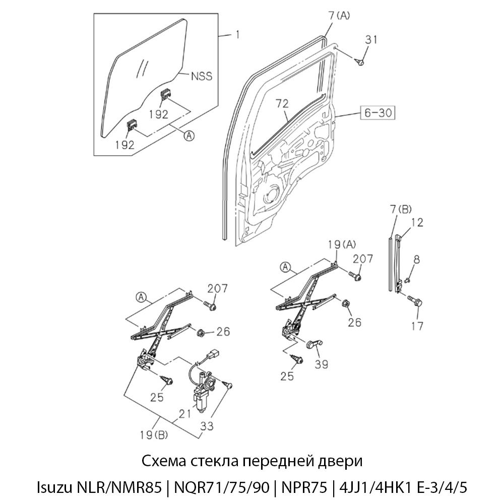 Стекло двери правой Isuzu FVR34 / FSR90 / NQR90 / NLR/NMR85 / NPR75 | Kmk Glass
