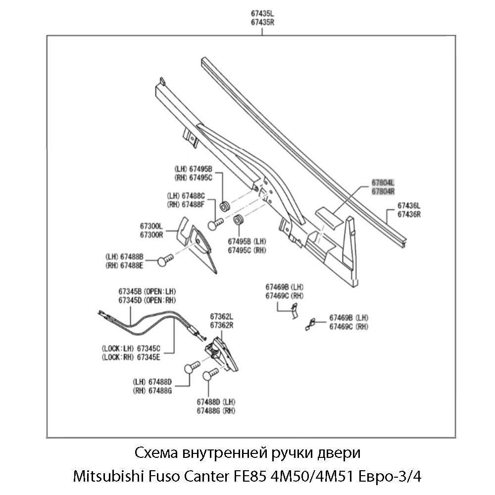 Ручка двери внутренняя правая Mitsubishi Fuso Canter FE85 4M50/4M51 Евро-3/4 | JMC