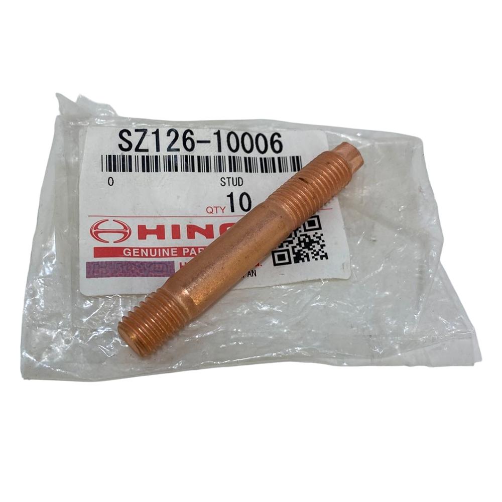 Артикул: SZ12610006Оригинал Hino для грузовиков — медная шпилька выпускного коллектора диаметром M10×1,5/M10×1,25 длиной 68 мм, совместима с двигателями N04C и стандартами Евро-3/4 и Евро-5 (дорест.).