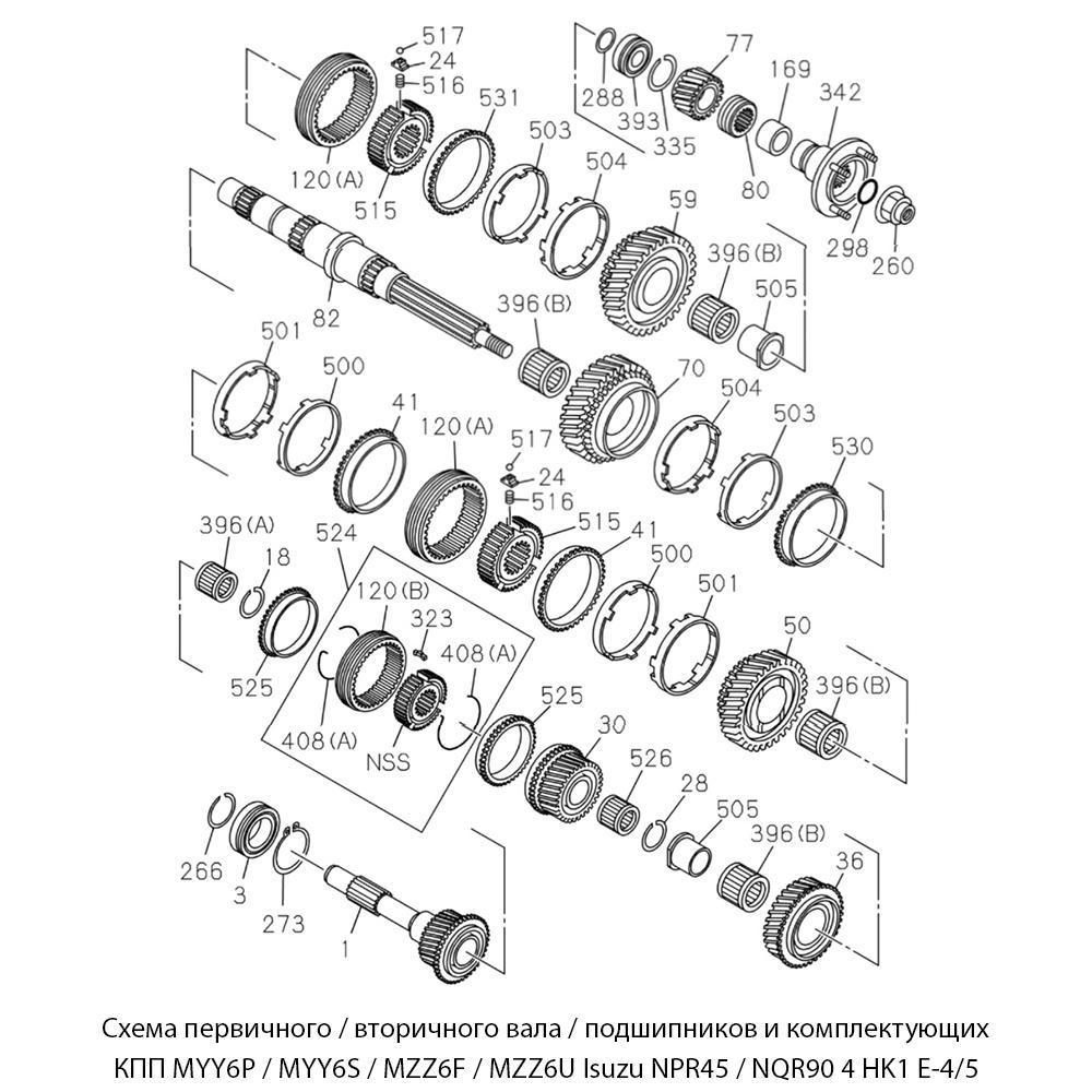 | Комплектующие 1/2/3/4/5-ой передачи | Первичный и вторичный вал. | |||