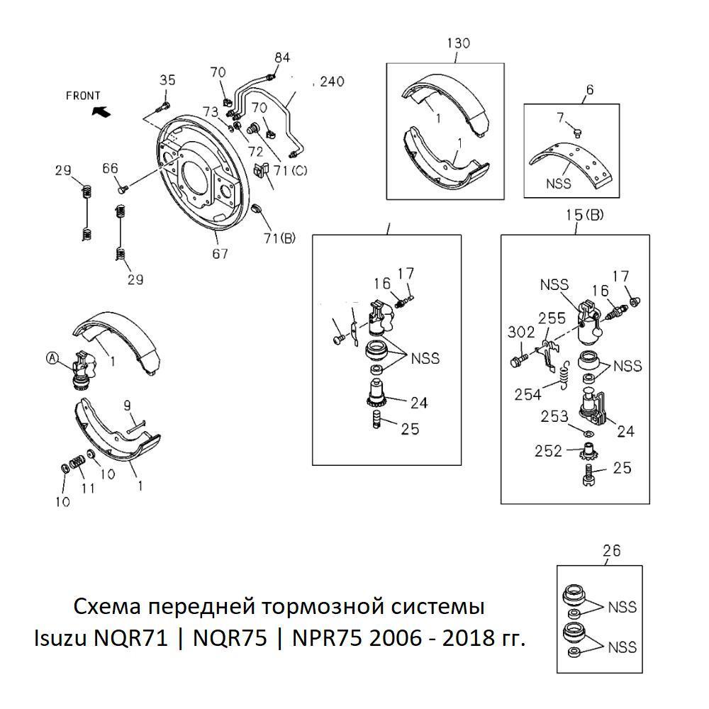 Передняя тормозная система Isuzu NQR71/75 и NPR75: