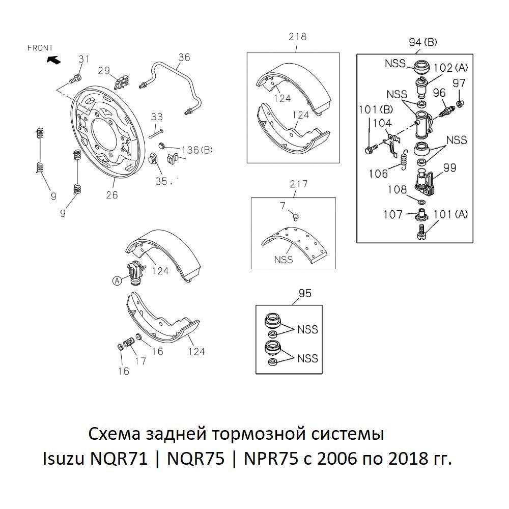 Задняя тормозная система Isuzu NQR71/75 и NPR75: