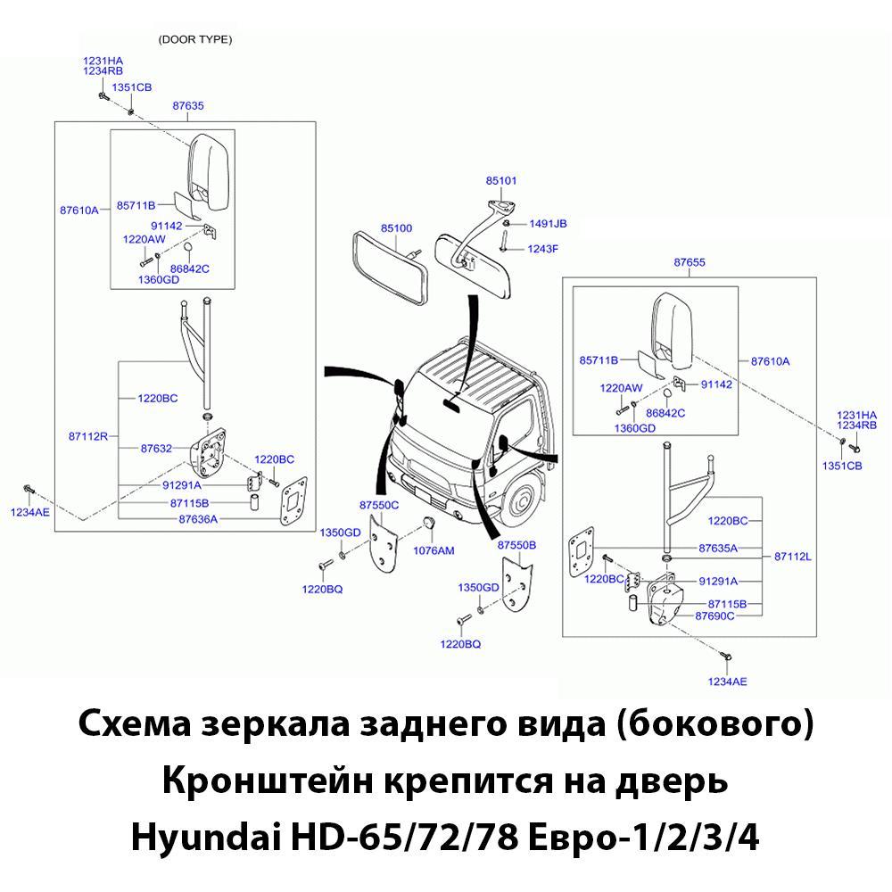 Кронштейн зеркала наружного левый (на дверь) Hyundai HD-65/72/78 D4AL / D4DB / D4DD / D4GA Евро-1/2/3/4 | JMC