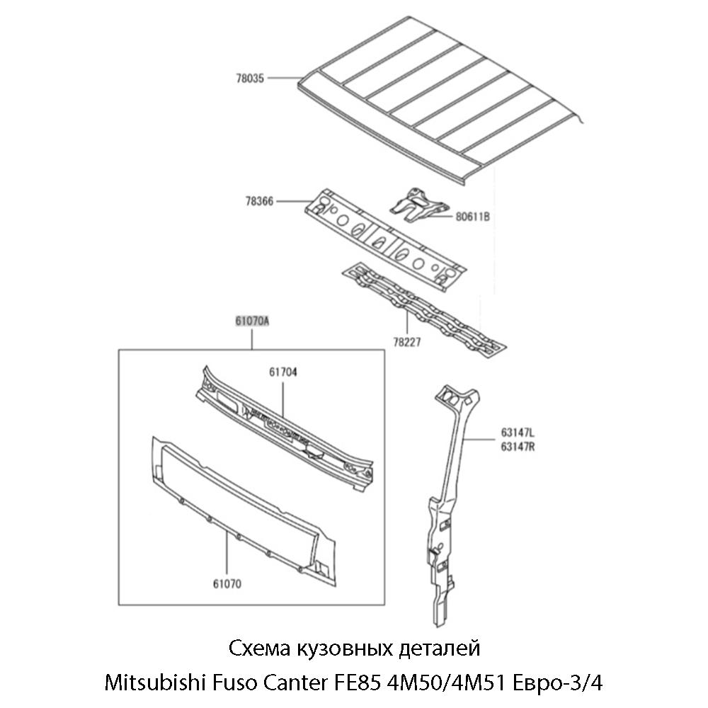 Артикул: MK997156Передняя панель (капот) JMC для Mitsubishi Fuso Canter FE85 с двигателями 4M50/4M51 и стандартами Евро-3/4, защищает моторный отсек, улучшает внешний вид и надежность конструкции.