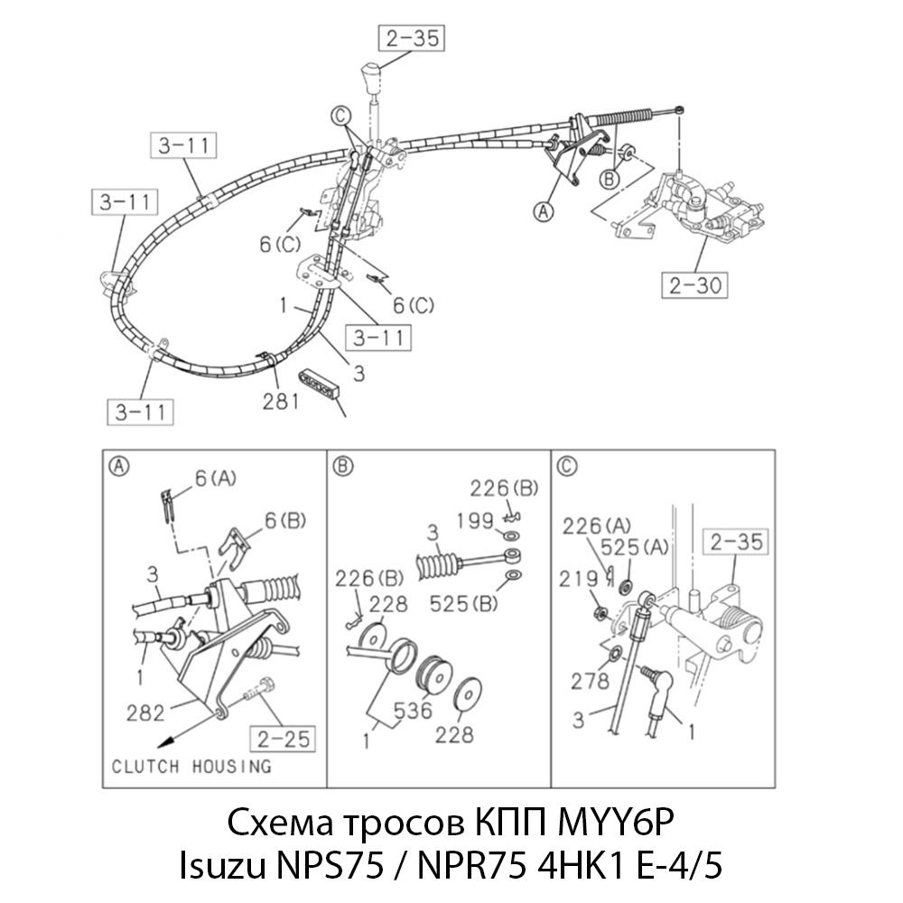 Трос предназначен для КПП модели MYY6P автомобилей Isuzu NPS75/NPR75 с двигателем 4HK1 и экологическим стандартом Евро-4/5. Обеспечивает надежное и плавное переключение передач, повышает комфорт и безопасность вождения.