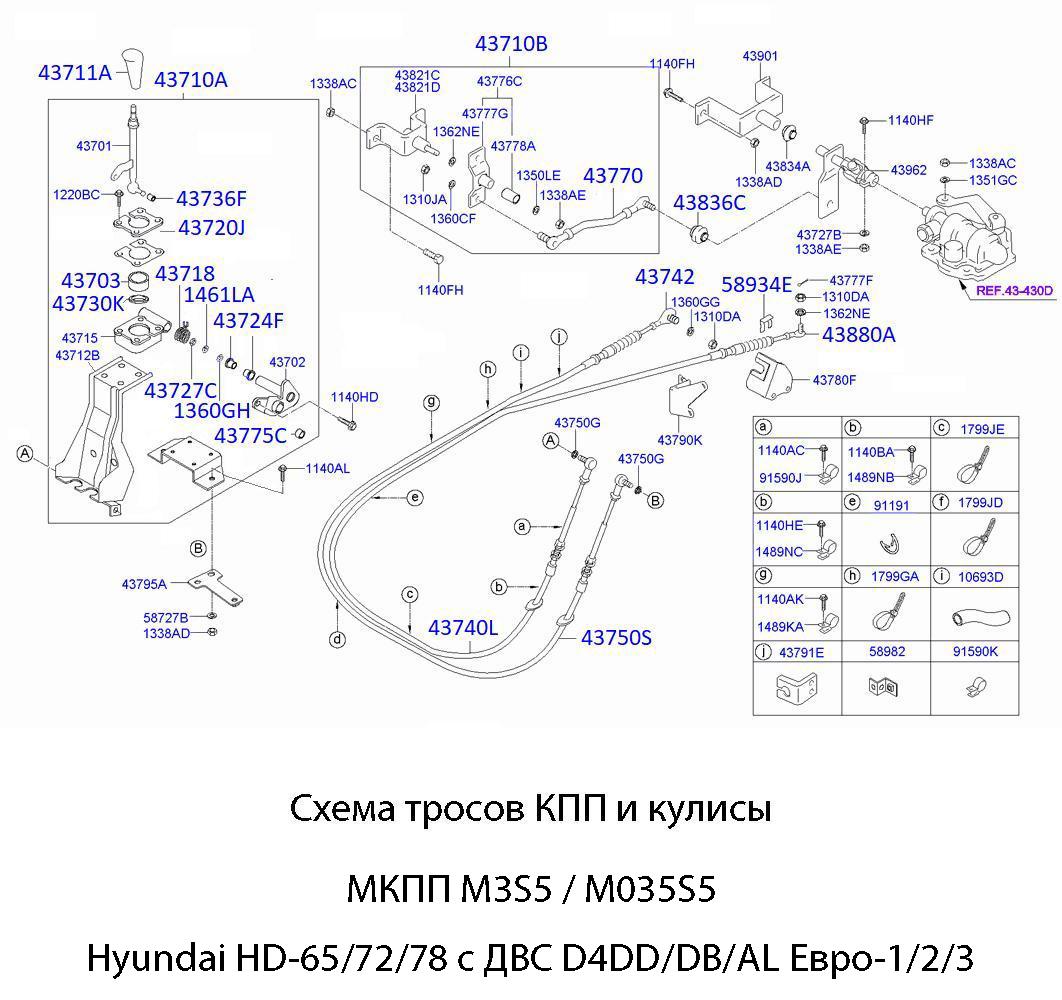 | 437405H001 | 43740L | Трос МКПП M3S5 переключения передач | Черный | D4AL / D4DB | 1 |