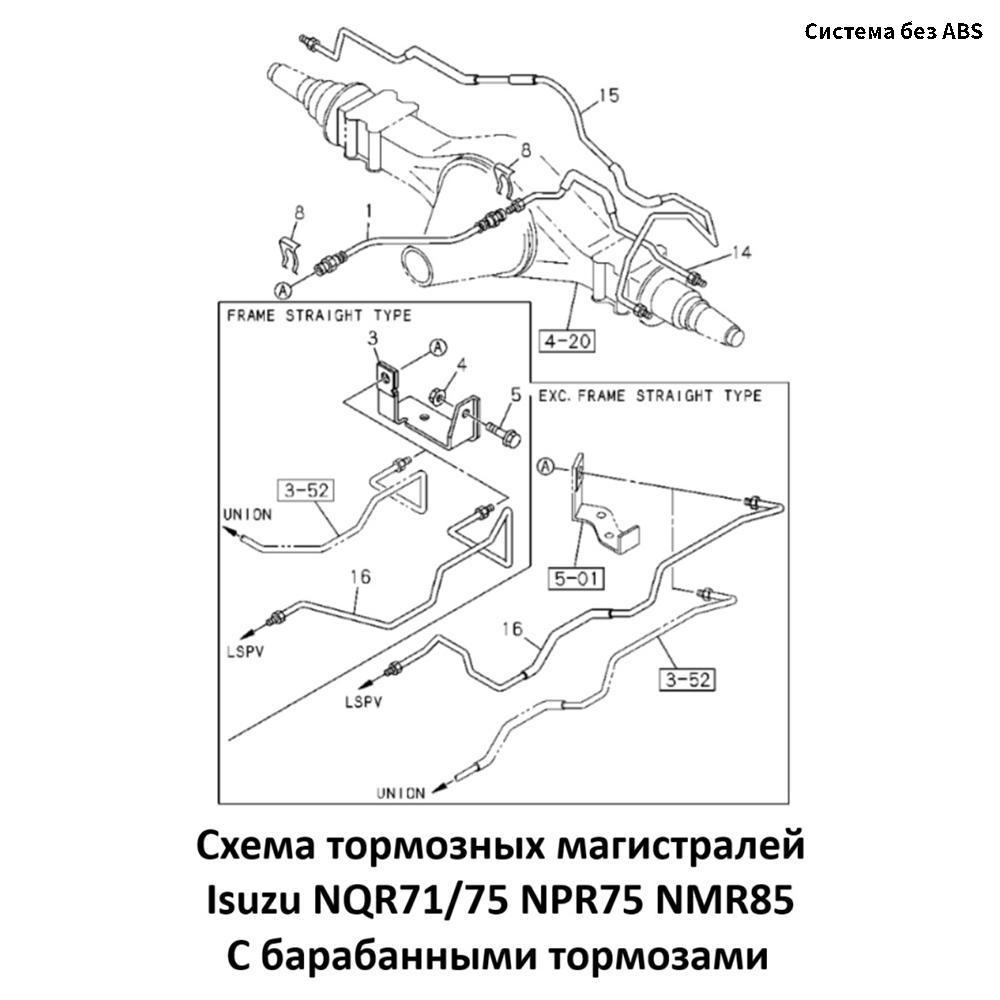 Трубка тормозная от левого к правому колесу (на мосту) Isuzu NQR71/75 | NPR75 | NLR/NMR85 с барабанными тормозами без ABS | Е-2/3/4 | JMC