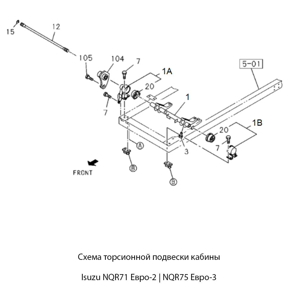Втулка (сайлентблок) опоры торсиона поднятия кабины Isuzu NQR71/75 Евро-2/3 | JMC