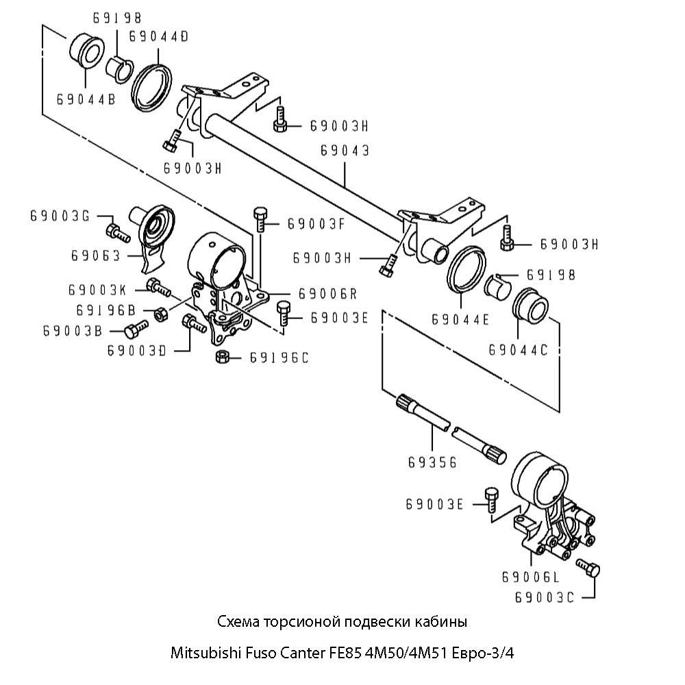 Втулка (сайлентблок) опоры торсиона поднятия кабины Mitsubishi Fuso Canter FE85 4M50/4M51 Евро-3/4 | Zevs