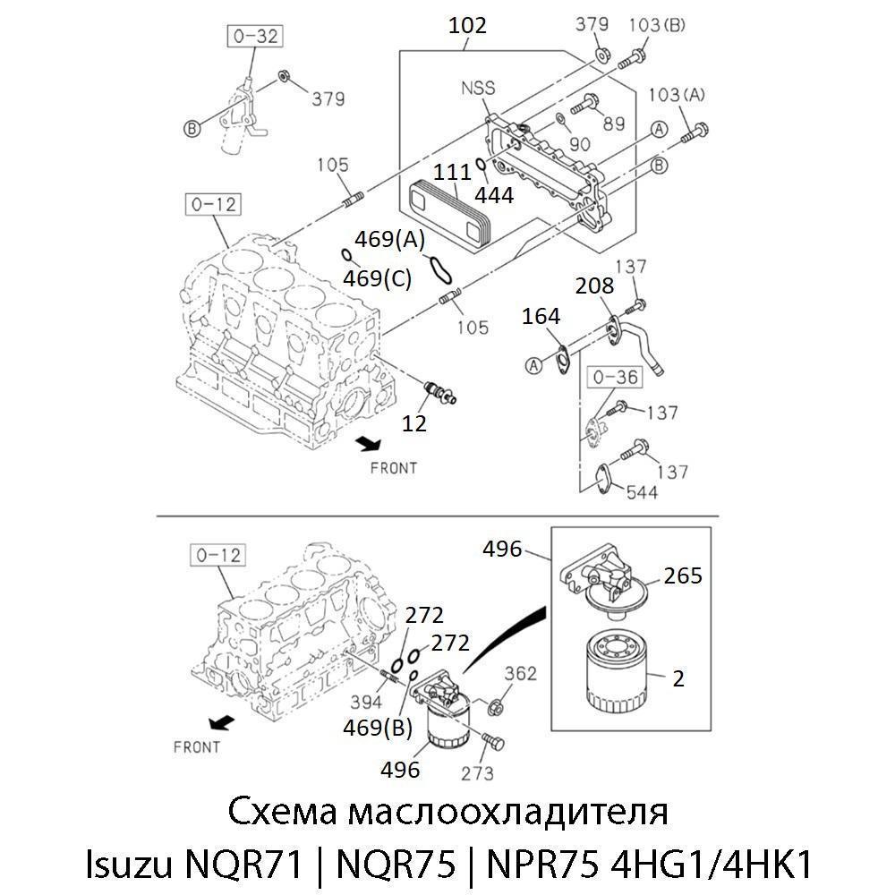 Прокладка-кольцо малое кронштейна-площадки масляного фильтра Isuzu NQR71/75/90/NPR75/FSR90 двигателей 4HG1/4HK1 Е-2/3/4/5 | Оригинал