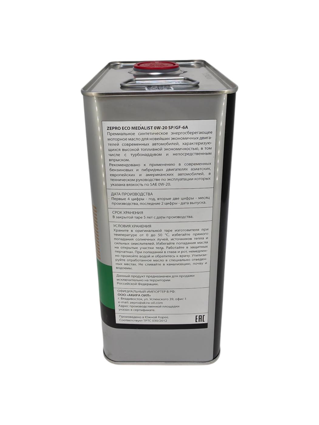 Моторное масло​​​​​​ Zepro Eco Medalist 0W20 | Канистра 4 л