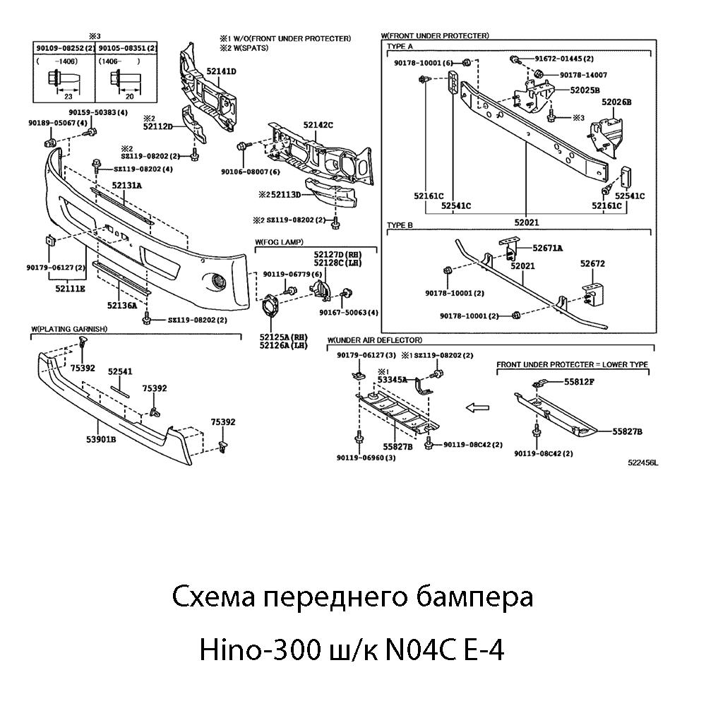 | 5211137400A0 | 52111E | Бампер передний Hino 300 14- (Широкая кабина/ Под ПТФ) | 1 |