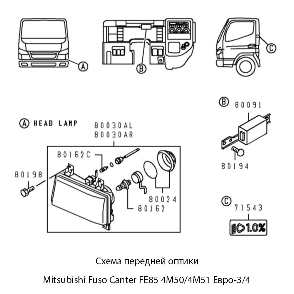 Фара головного света (Левая) Mitsubishi Fuso Canter FE85 4M50/4M51 Евро-3/4 | SAT
