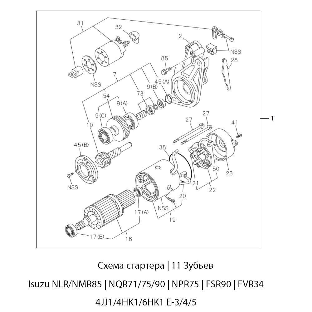 Реле втягивающее стартера 4 / 5 kW Z=11 Isuzu NLR/NMR85 | NQR71/75/90 | NPR75 | FSR90 | FVR34 | 4JJ1/4HK1/6HK1 Е-3/4/5 | CHM