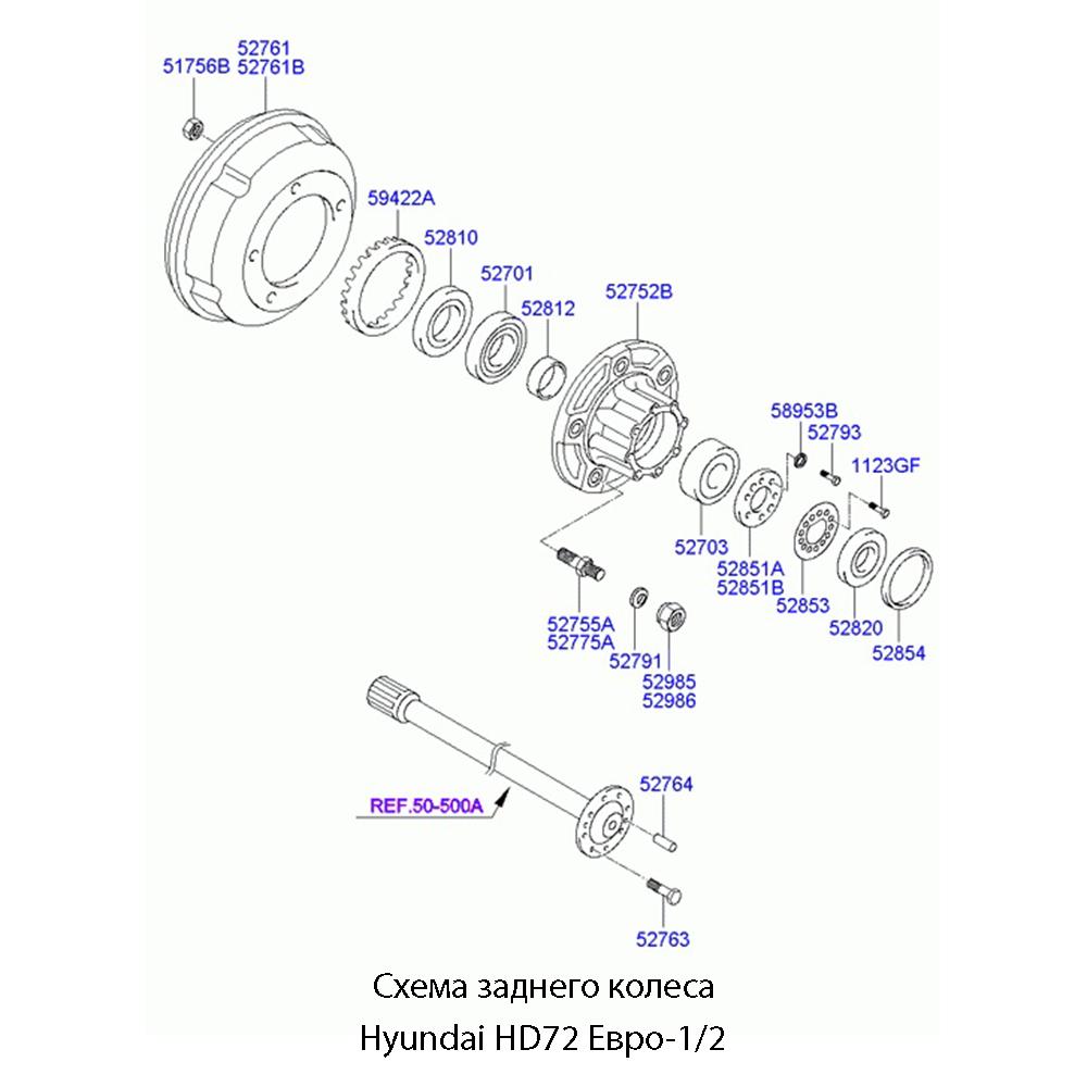 | 529855H500 | 52985 | Гайка M41x1,5 левого колеса | 6 |